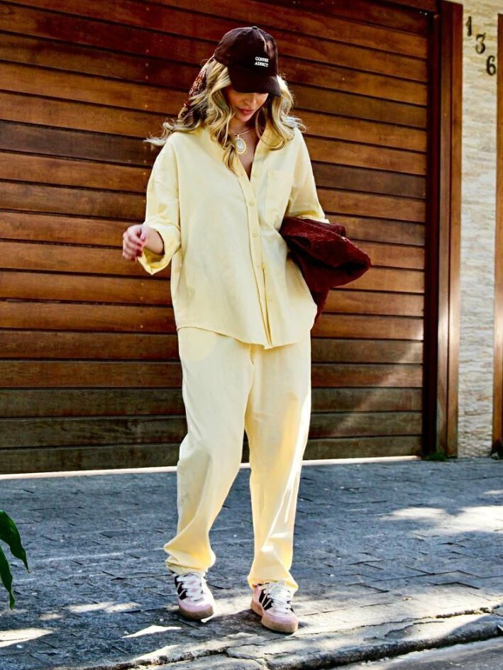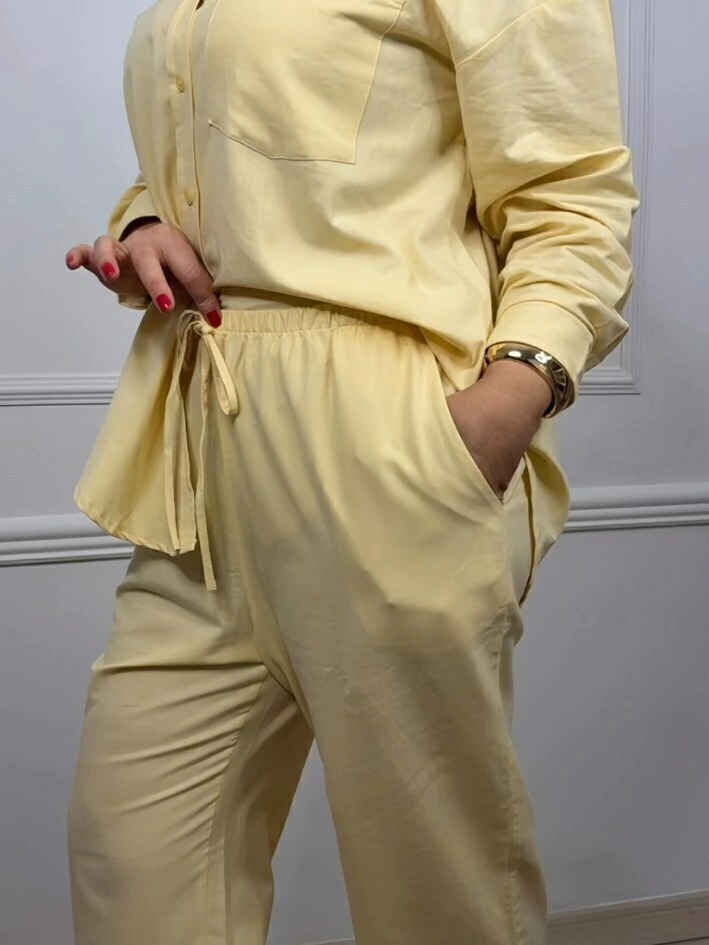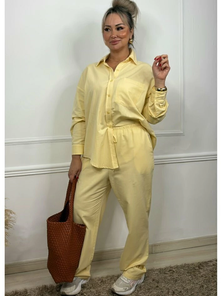 | CONJUNTO COM TECIDO LEVE E MALEAVEL, COMPOSTO POR CAMISA AMPA COM BOTÕES E BOLSOS FRONTAL, E CALÇA COM CINTURA ALTA COM ELASTICO E CAIMENTO SOLTO. | ||||||||||||||||